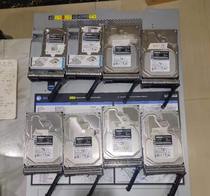 上周五晚,合肥爱特数据恢复接收到了一台联想SR588服务器。一共8块盘,两块盘做的系统,另外6块8t的硬盘做的raid5。其中2块硬盘因为损坏导致raid掉线。